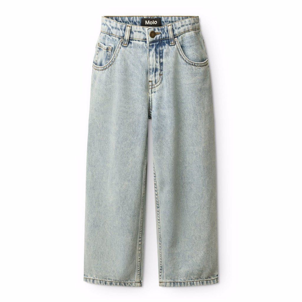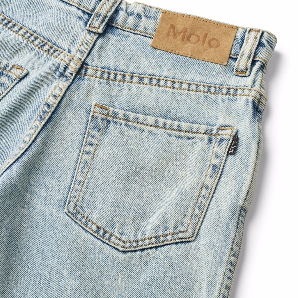 Dětské světle modré džíny Molo z organické bavlny. Volný střih, nastavitelné pas a kvalitní denim. Stylové a pohodlné džíny pro děti.