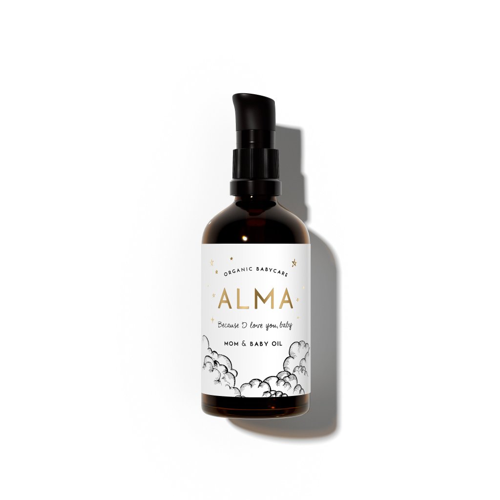 ALMA Mom & Baby Oil je jemný pečující olej určený pro posílení každodenního rituálu blízkosti mezi maminkou a miminkem. Vysoce kvalitní bio oleje z mákového semínka, meruňkových jader, avokáda, oliv a slunečnice vyživují, chrání a zklidňují citlivou pokožku od prvních dnů života.