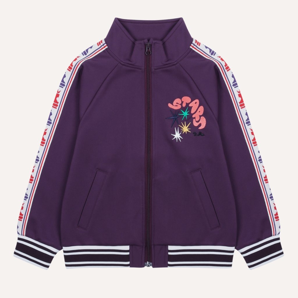 Trendy dětská mikina Jellymallow Chess Track Jacket ve fialové barvě. Pohodlný materiál, sportovní střih a styl pro aktivní děti.