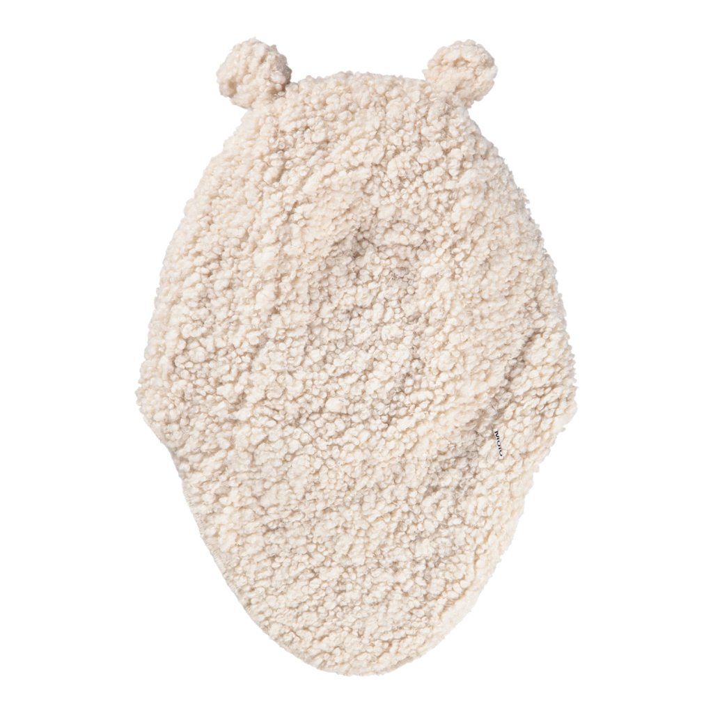 Praktická dětská kukla od značky Molo v krémové barvě. Fleece z recyklovaného polyesteru, ouška medvídka a žerzejová podšívka.