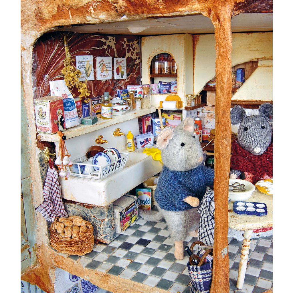 Projekt Dům myšek vytvořila Karina Schaapman jako dekoraci do této dětské knížky. Je vyrobený z kašírovaných kartonových krabic. Na zařízení interiéru použila Karina autentické látky z padesátých, šedesátých a sedmdesátých let a také různé druhy odpadového materiálu. Dům myšek má přední, boční a zadní trakt a je v něm přes sto pokojů, má spoustu chodeb i venkovní prostory. Myšky, které ho obývají, navrhla a vyrobila Karina. Během stavby a zařizování jednotlivých pokojů spontánně vznikaly příběhy do knihy, kde mají hlavní role myšky Sam a Julie.