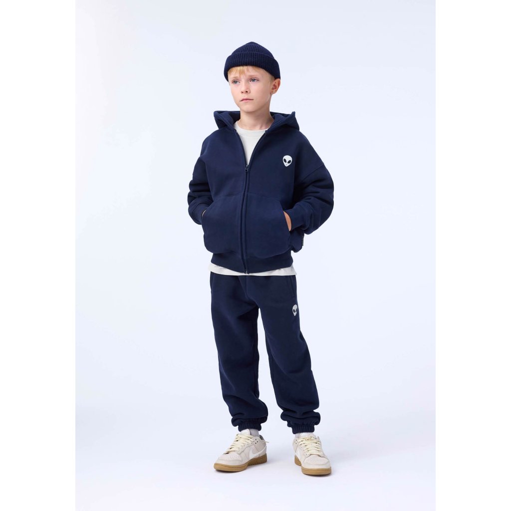 Klasická dětská mikina od značky Molo s kapucí a klokaní kapsou. Tmavě modrá barva, měkká bavlna, zip vpředu, žebrované lemy. Certifikace OEKO-TEX®.
