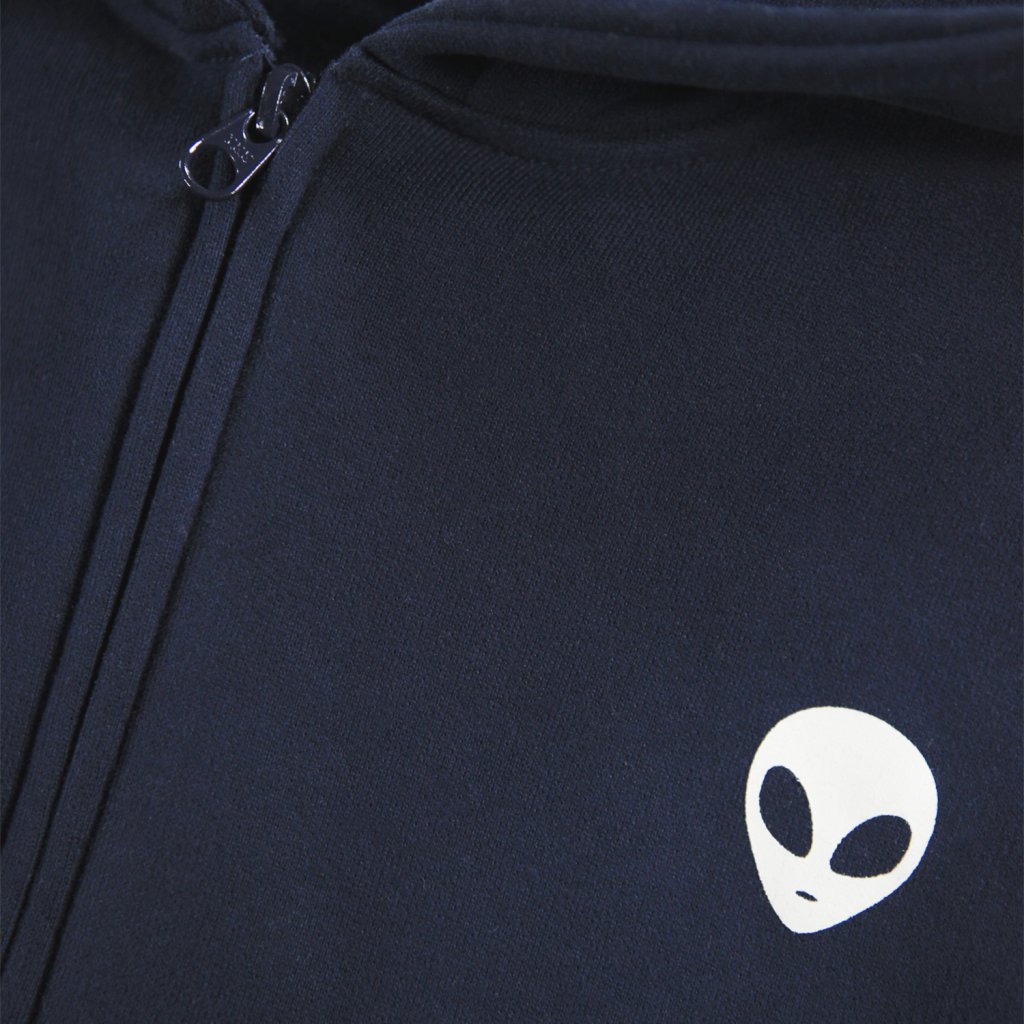 Klasická a pohodlná dětská mikina s kapucí v tmavě modré barvě, vyrobená z měkké organické bavlny s příměsí polyesteru. Mikina má praktický přední zip, klokaní kapsu a žebrované lemy na rukávech a spodním okraji, které zajistí perfektní padnutí.