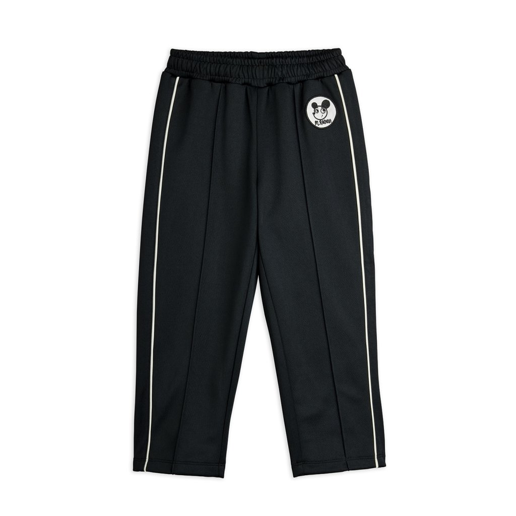 Stylové dětské kalhoty Mini Rodini ze 100% recyklovaného polyesteru s nášivkou Ritzratz. Elastický pas, kontrastní pruhy na nohavicích a elegantní přední záševky.