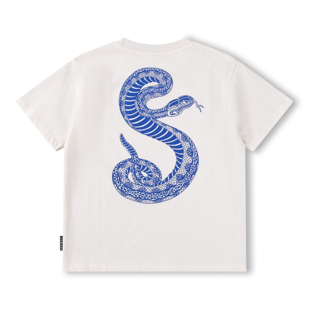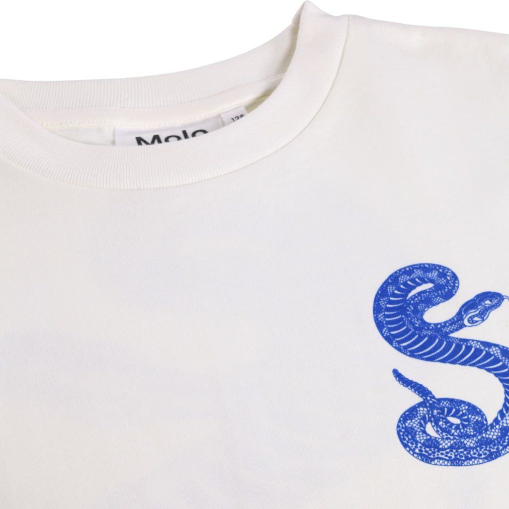 Dětské bílé tričko Molo s potiskem kobry z organické bavlny. Pohodlný střih, kvalitní materiál a originální design pro děti.